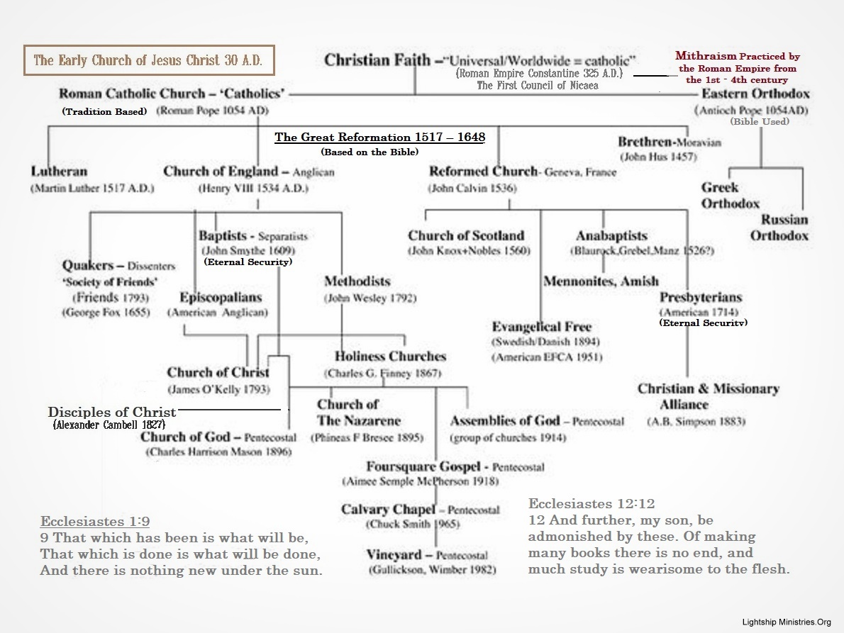 The problems arise when men try to take the Lord and have him conform (or fit) into their personal beliefs; instead of simply following him in obedience, like we were designed to do! This is simply what the flesh does, no matter how you dress it! I have taken a couple of verses from Ecclesiastes in the publishing of this graph to show that basically humanity has always fallen into the same doctrinal traps since the beginning of the “church age”, so that no one should be surprised if they hear some type of retread as exhibited here!