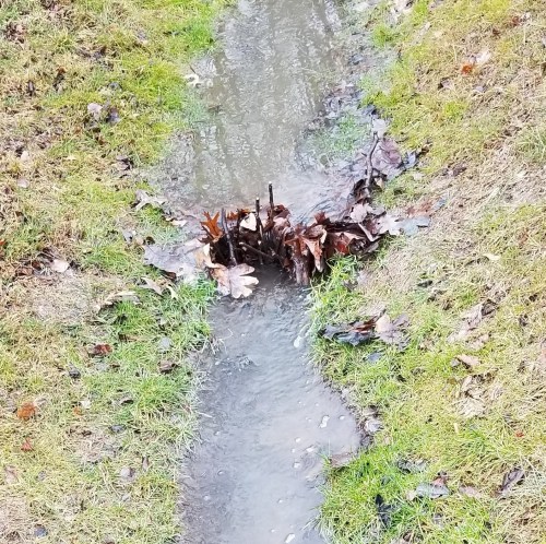 I was perplexed this morning why my driveway was draining properly, but not the other drains, and this is what I found by the driveway drain outlet!