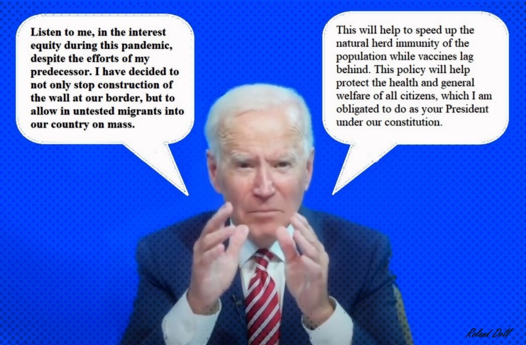 Joe Biden defending his border policies along with COVID (Satire).