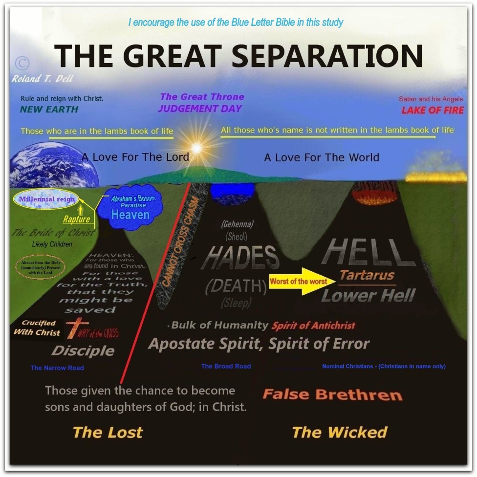 “Sheol means ‘The place of departed spirits.’ Sheol/Hades was the abode of the spirits of the dead. Before the resurrection of Christ, both believers and unbelievers went to Sheol/Hades. Unbelievers still go there.” – This updated graphic took a lot of Bible studying to get this correct; and research from men like, Johnathan Edwards was the best help.