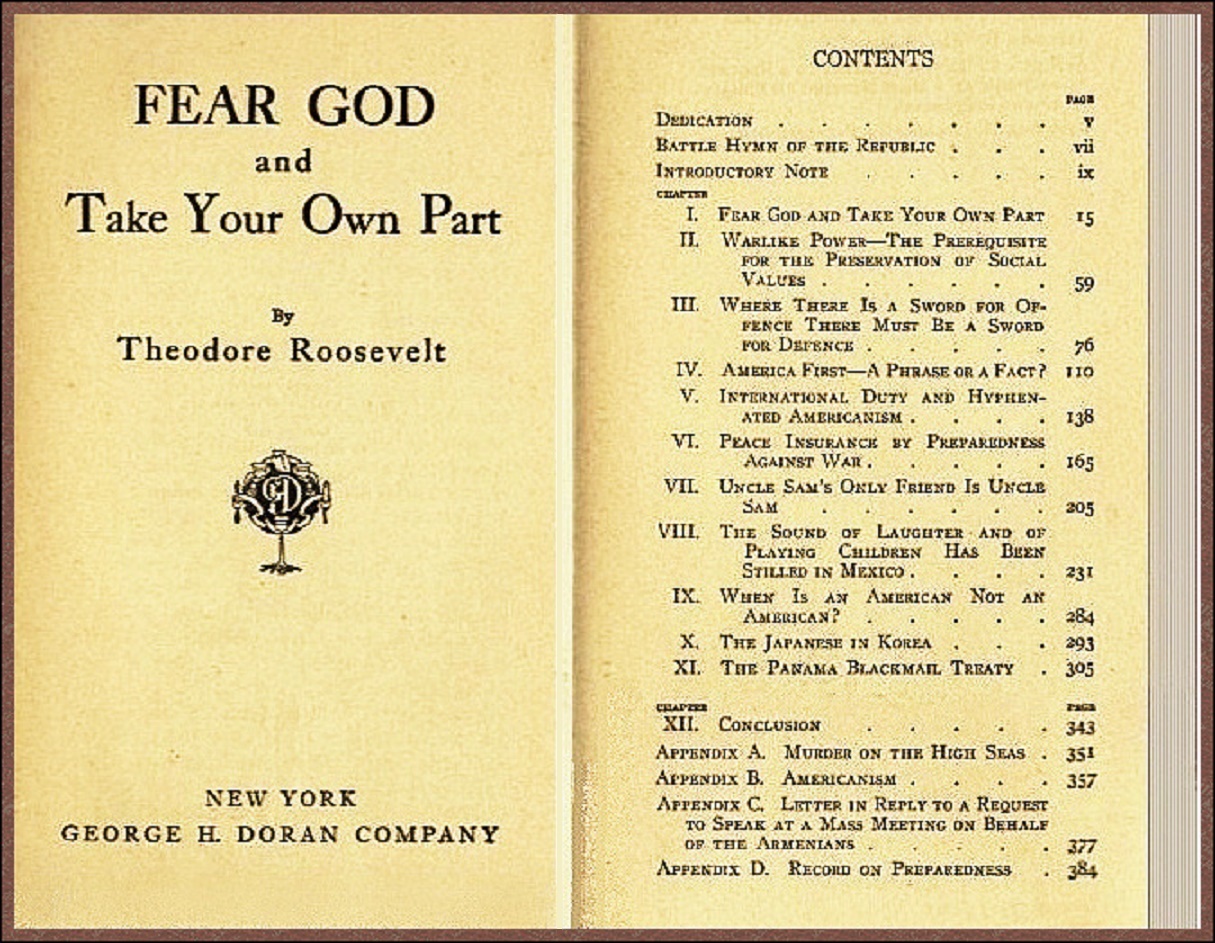 Fear God and take your own part by Roosevelt, Theodore, 1858-1919 (download) https://archive.org/details/feargodandtakeyo00roosuoft/mode/2up
