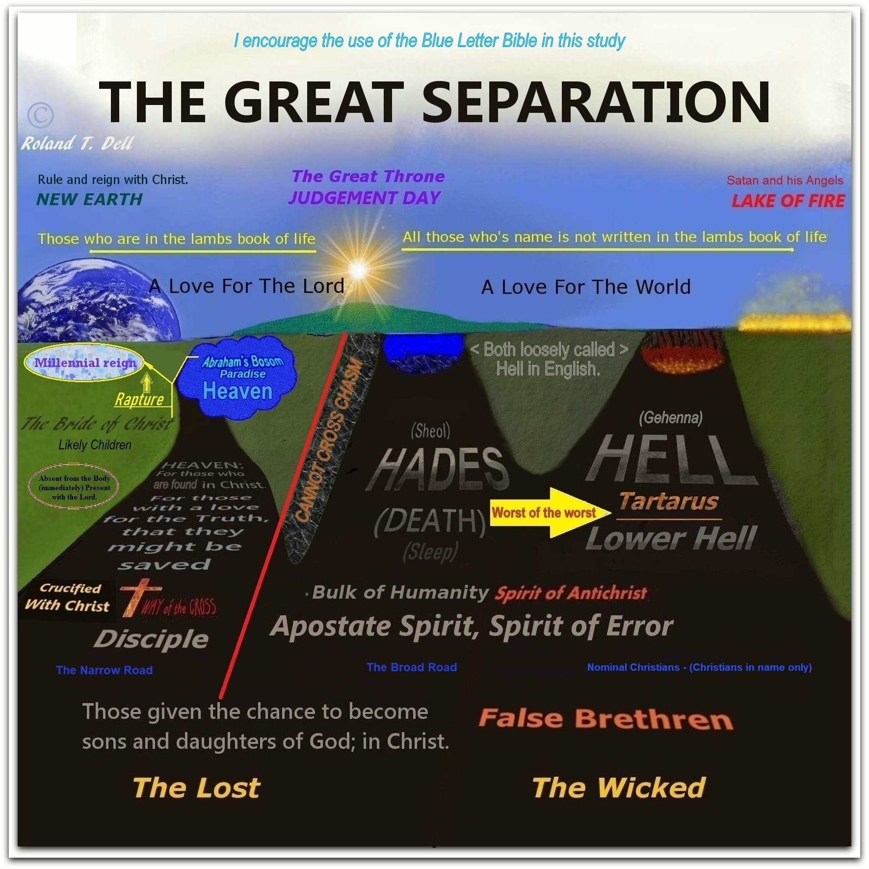 “Sheol means ‘The place of departed spirits.’ Sheol/Hades was the abode of the spirits of the dead. Before the resurrection of Christ, both believers and unbelievers went to Sheol/Hades. Unbelievers still go there.” – This updated graphic took a lot of Bible studying to get this correct; and research from men like, Johnathan Edwards was the best help.